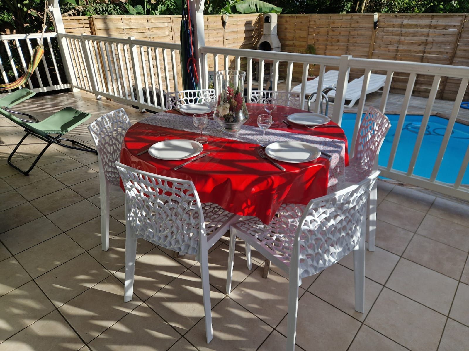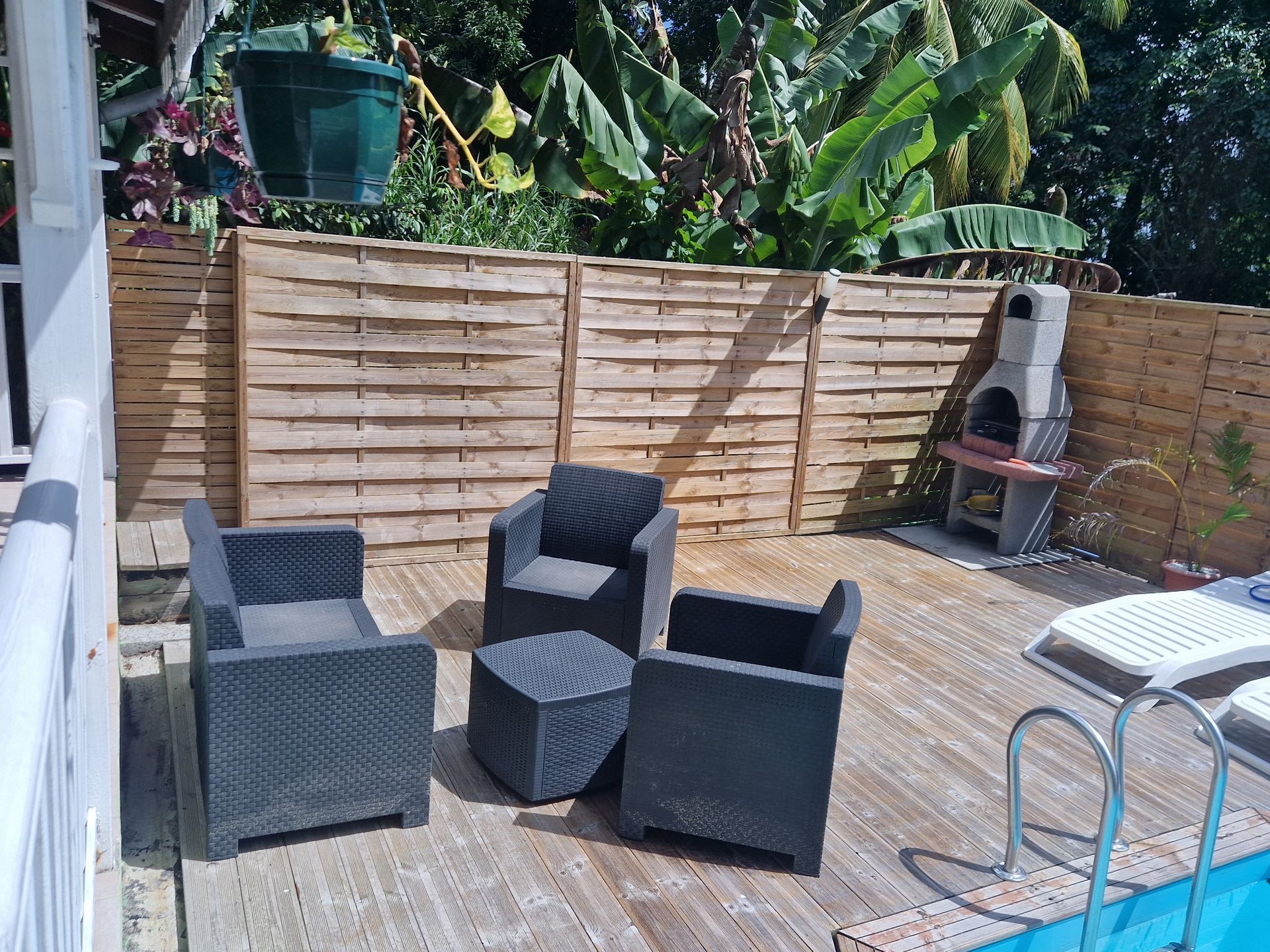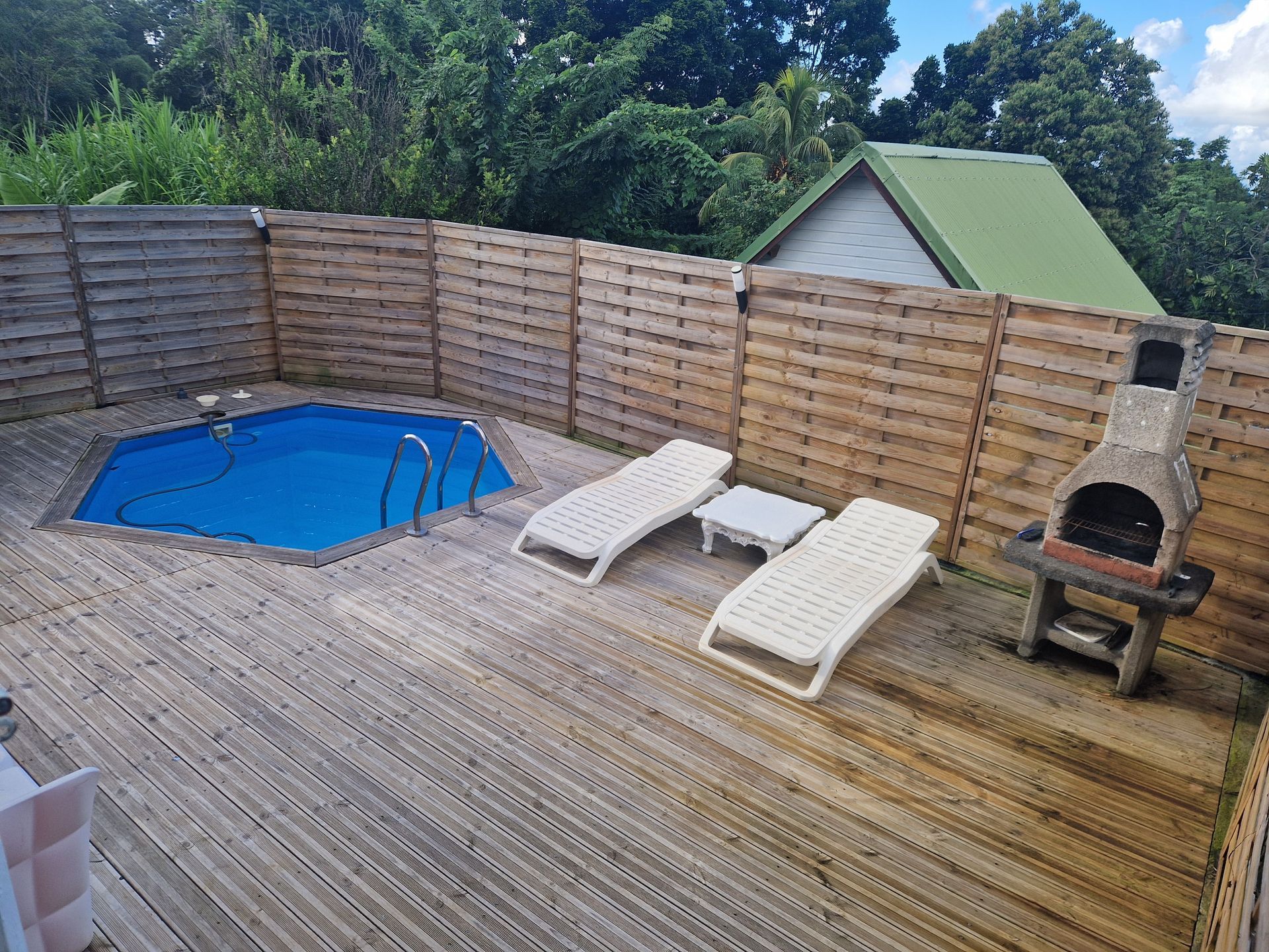 - 1 piscine privative, hexagonale, au chlore, (4,22m de Diamètre, 1,24m de profondeur), une terrasse en deck, 2 Bains de soleil , un barbecue pour vos grillades.
