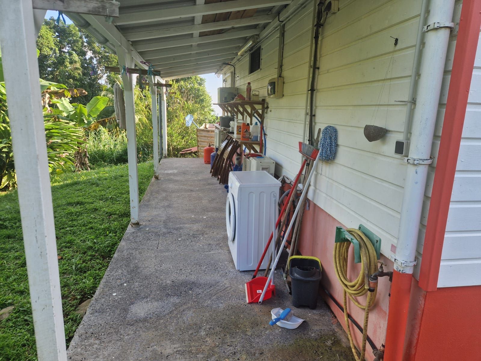 - Un espace buanderie avec lave linge, séchoir et placard de rangement des produits.