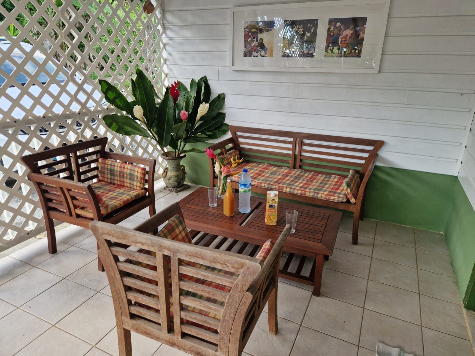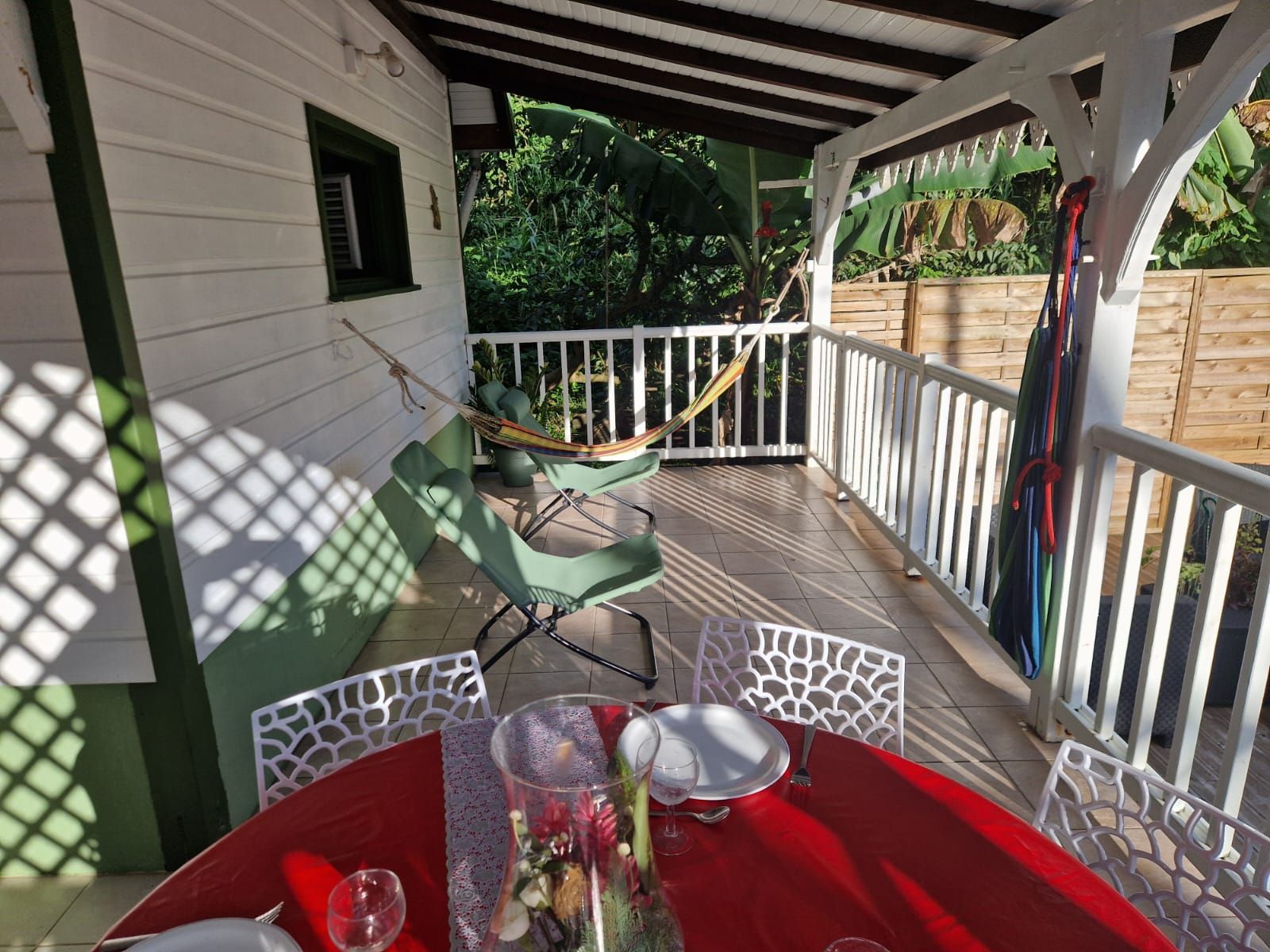 - Une vaste véranda en L avec table et chaises, 2 hamac, 2 chaises longues et un salon extérieur.