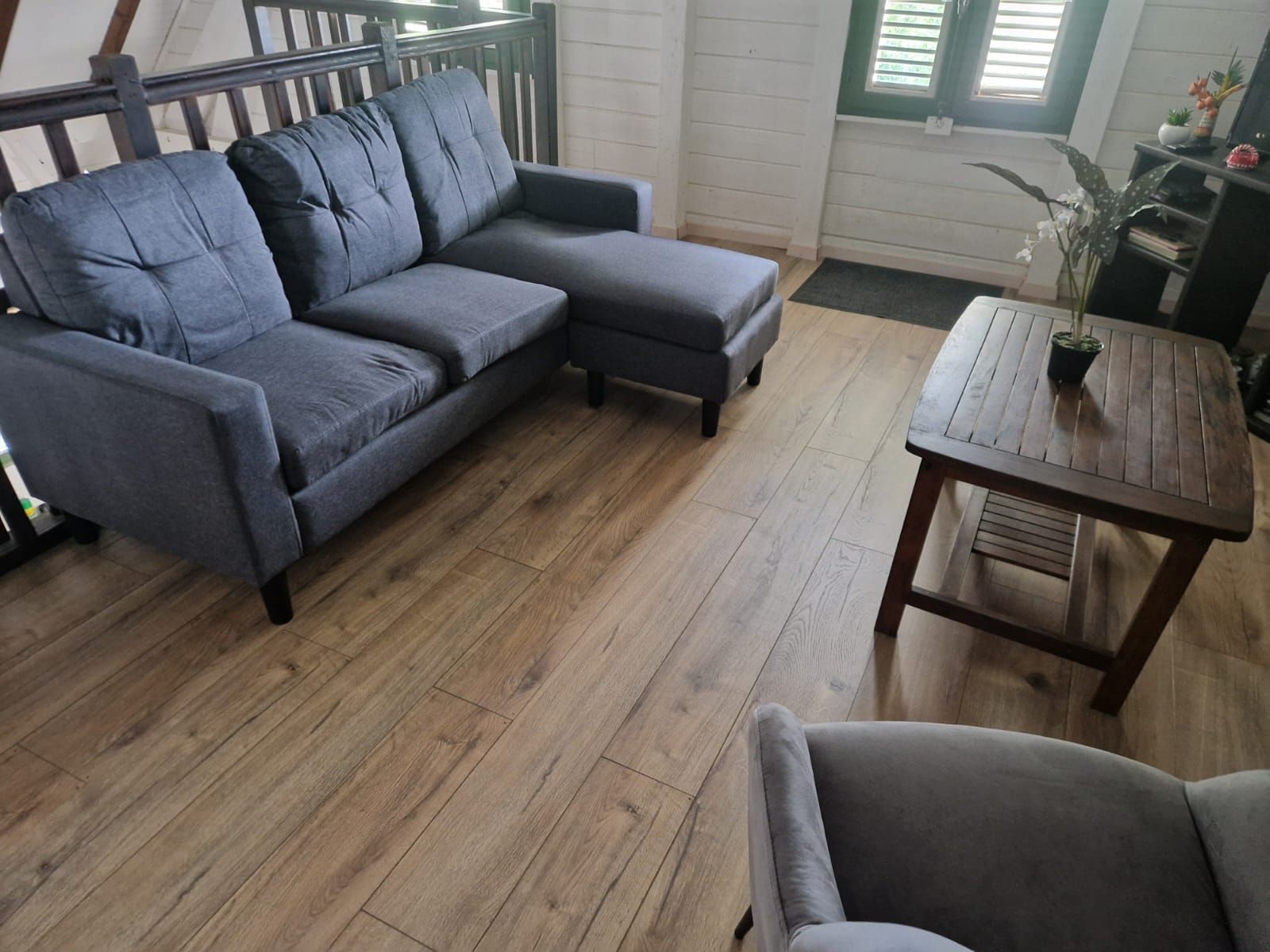 - Un salon dans la mezzanine avec divan, fauteuils, téléviseur, lecteur DVD.
